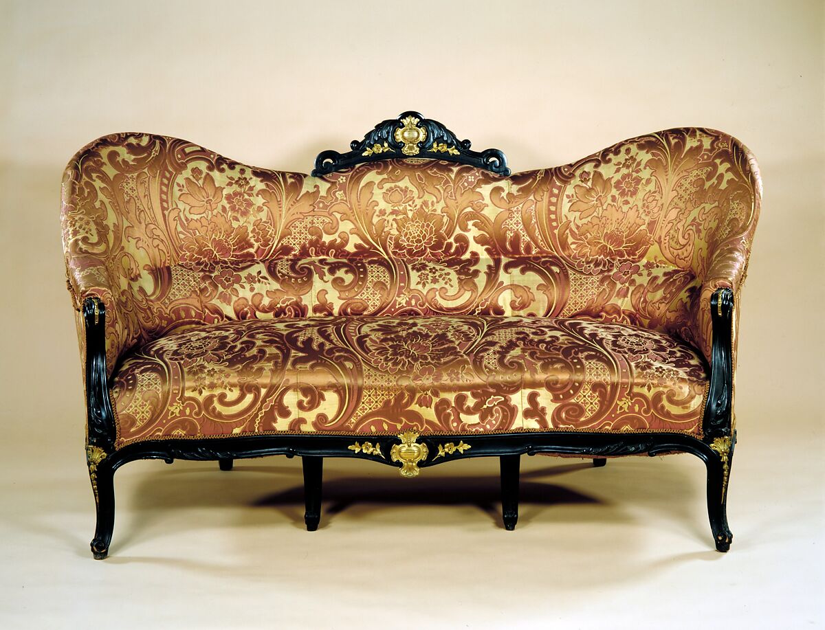 In the 1840s, many well-to-do New Yorkers preferred French furniture to that made in their native city. In 1844, Mrs. Samuel Jaudon of New York wrote to her friend Mrs. James C. Colles that "we on this side feel as if everything [is] so much handsomer, and better, and desirable that comes from Paris." Upon orders from New York clients, Parisian cabinetmaker and decorator Ringuet-Leprince shipped entire rooms of furniture, carpets, looking glasses, wallpapers, decorative objects, and sculpture. This sofa is part of a formal drawing room suite that was custom-made by Ringuet-Leprince as part of a suite for the abovementioned Colles family. The suite includes a pair of sofas, four armchairs, four side chairs, a firescreen, and a table (see 69.262.1-10). In 1850, the Colles' daughter, Frances, married John Taylor Johnston, a New York railroad executive who later served as the first president of The Metropolitan Museum of Art from 1870 to 1889. The suite of furniture descended in the family, original upholstery intact, and, except for two armchairs, was given to the Museum in 1969.