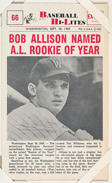- Title: Bob Allison #66 from Nu-Card Baseball Hi-Lites series (W460)