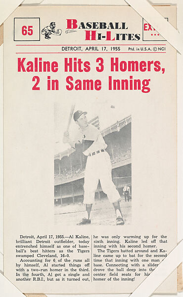 - Title: Al Kaline #65 from Nu-Card Baseball Hi-Lites series (W460)