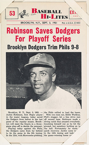 - Title: Jackie Robinson #53 from Nu-Card Baseball Hi-Lites series (W460)