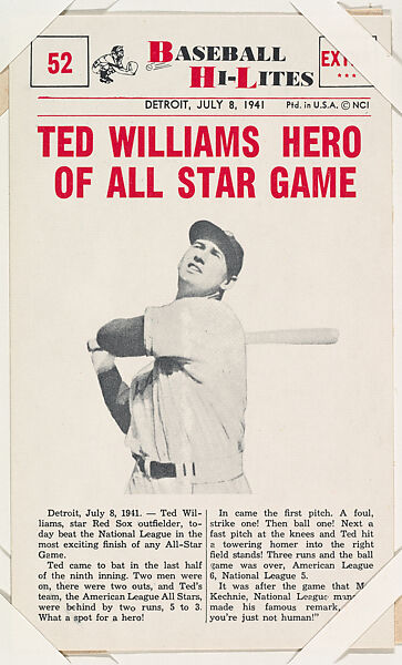 - Title: Ted Williams #52 from Nu-Card Baseball Hi-Lites series (W460)