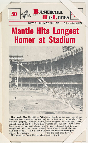 - Title: Mickey Mantle #50 from Nu-Card Baseball Hi-Lites series (W460)