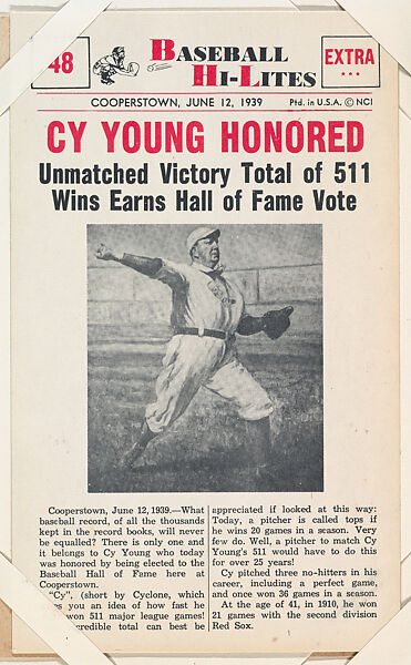 - Title: Cy Young #48 from Nu-Card Baseball Hi-Lites series (W460)