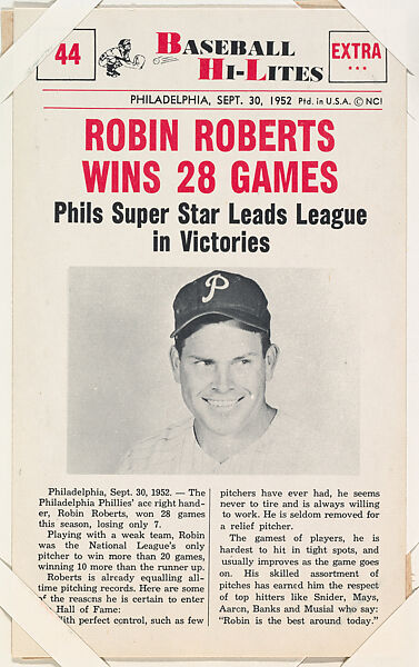 - Title: Robin Roberts #44 from Nu-Card Baseball Hi-Lites series (W460)