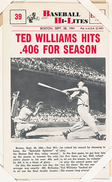 - Title: Ted Williams #39 from Nu-Card Baseball Hi-Lites series (W460)