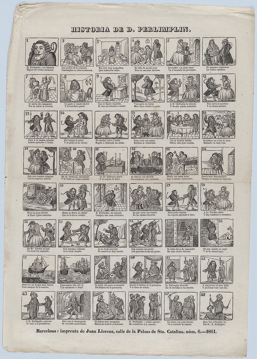 - Title: Broadside with 48 scenes relating to the story of Don Perlimplin