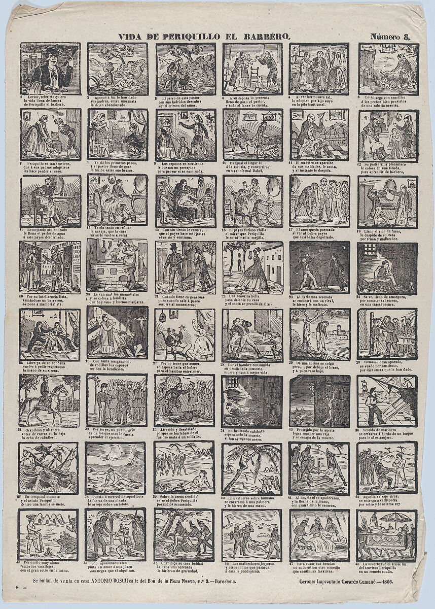 - Title: Broadside with 48 scenes from the life of Periquillo the Barber