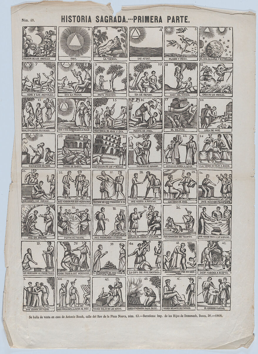- Title: Broadside with 48 scenes illustrating passages of holy scripture (Part I)