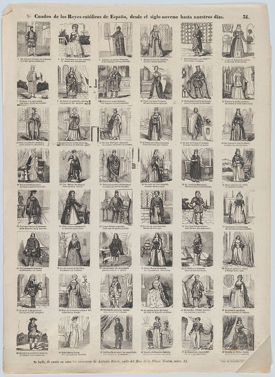 - Title: Broadside with 48 scenes depicting the kings and queens of Spain