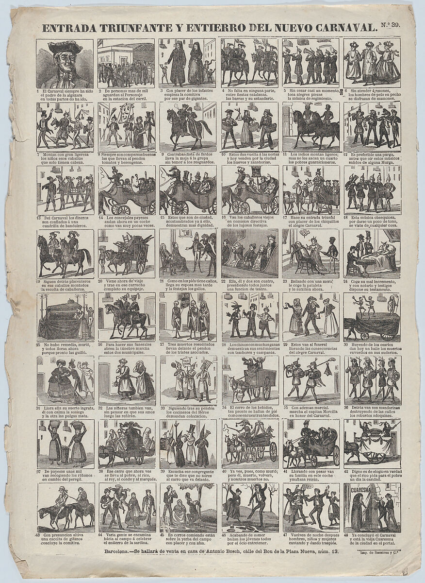 - Title: Broadside with 48 scenes relating to carnival in Barcelona