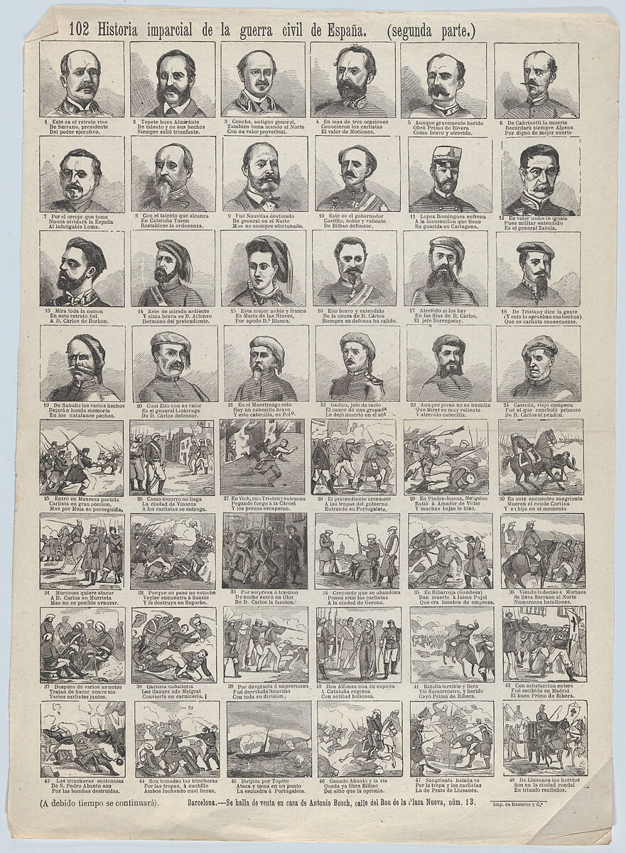 - Title: Broadside with 48 scenes telling the 'impartial' story of the civil war in Spain (Part 2)