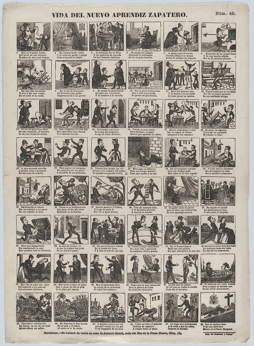 - Title: Broadside with 48 scenes relating to life of the apprentice shoemaker