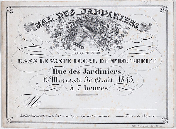 - Title: Invitation to the Gardener's Ball, August 30, 1843