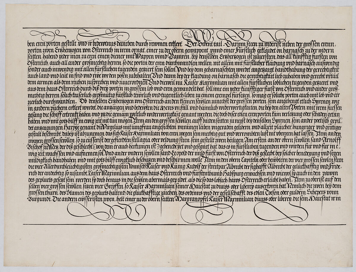 - Title: Explanatory Text, Part IV, from the Arch of Honor, proof, dated 1515, printed 1517-18