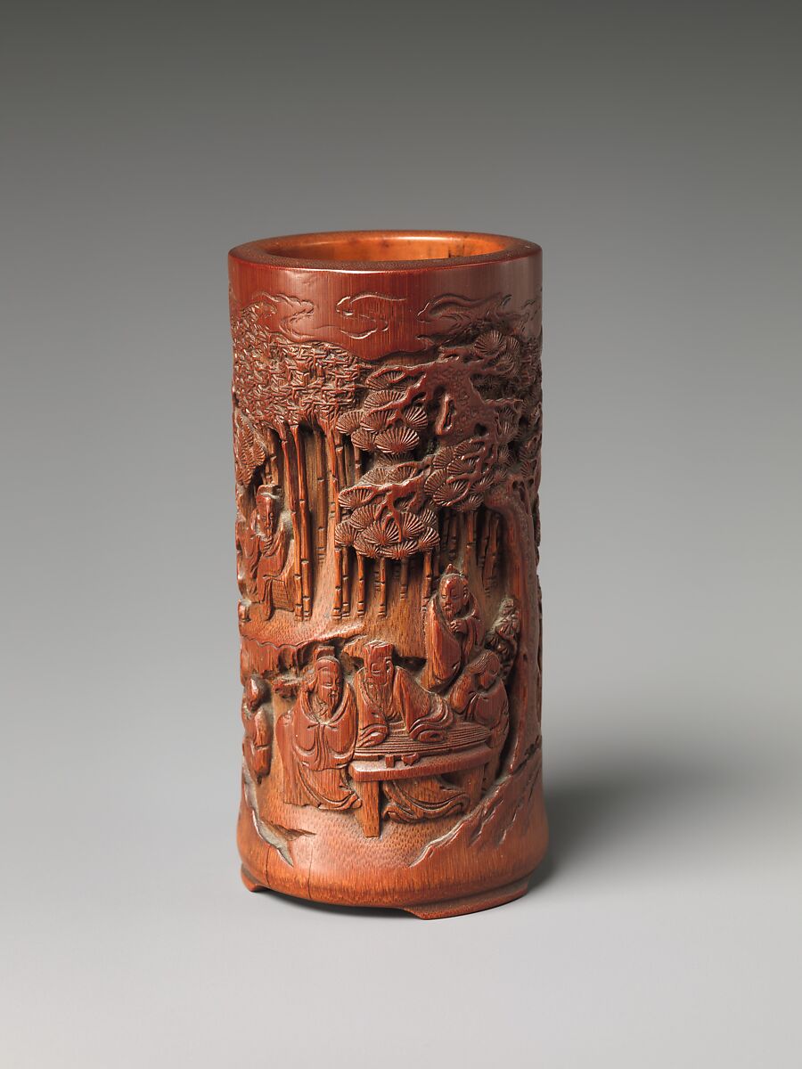 - Title: Brush holder with scholars in a garden