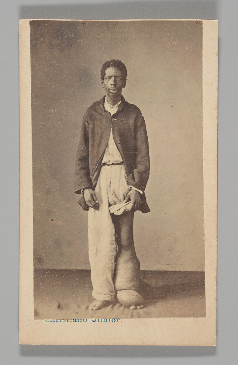 - Title: [Studio Portrait: Man Standing with Swollen Leg and Foot Caused by Elephantiasis, Brazil]