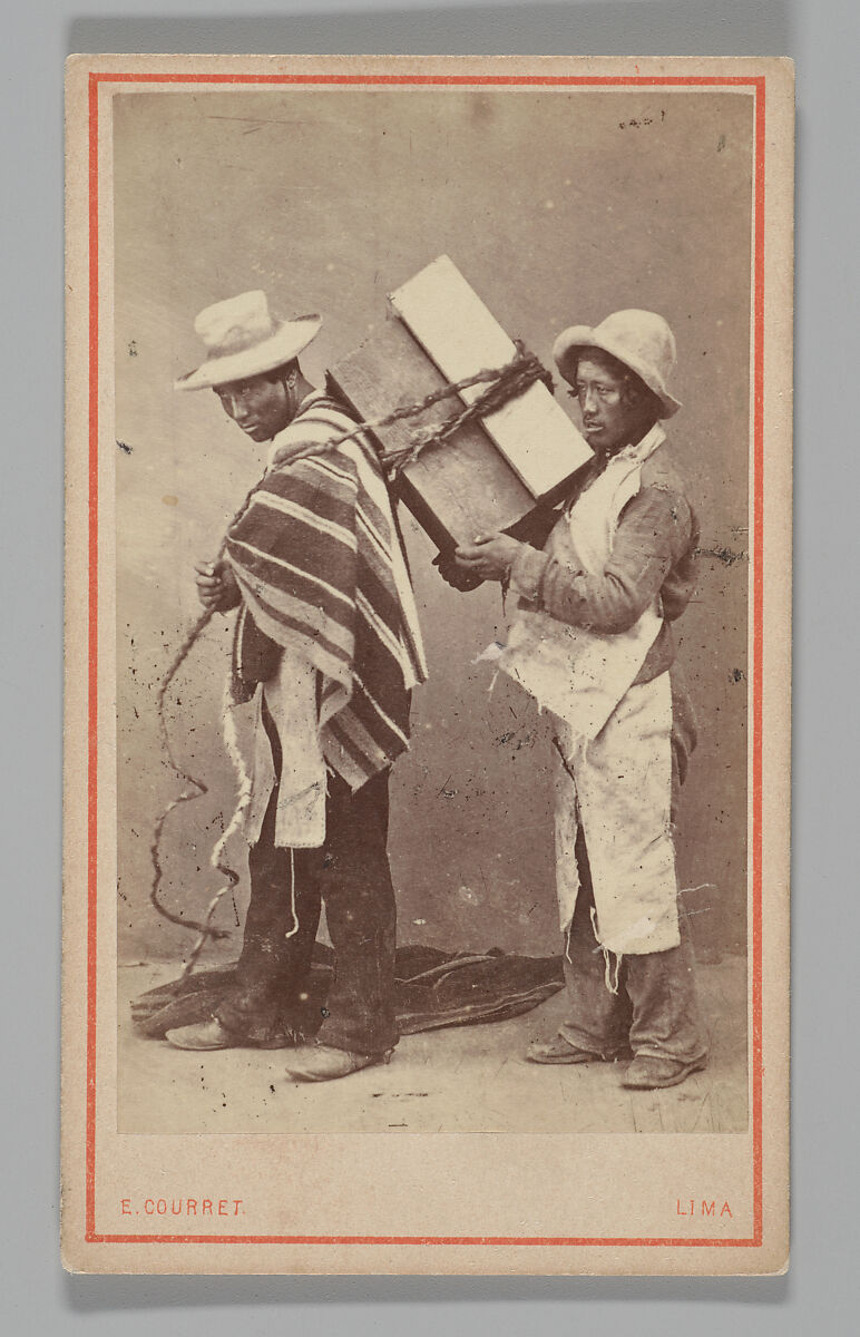 - Title: [Studio Portrait: Two Men, one with Box Tied to his Back, Lima]