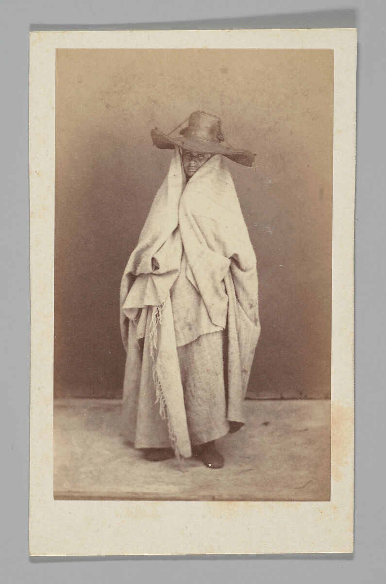 The carte de visite, a format comprised of an approximately 2 x 4 inch photograph mounted to card stock, was perhaps the most ubiquitous of nineteenth-century photographs. The French studio portrait photographer André-Adolphe-Eugène Disdéri first patented the carte in 1854. His innovation of exposing not just one but eight photographic images on the same glass plate negative enabled cartes to be made cheaply and reproduced on a mass scale. During the late 1850s and throughout the latter half of the century, these economical keepsakes depicting portraits of loved ones, celebrities, monarchs, and foreign types circulated en masse and spurred a veritable "cartomania." Collected in albums, traded among friends, and admired in drawing rooms, cartes put photography in the hands of virtually everyone, and thus offered a means of reflecting upon one’s own social standing in an ever-expanding world.