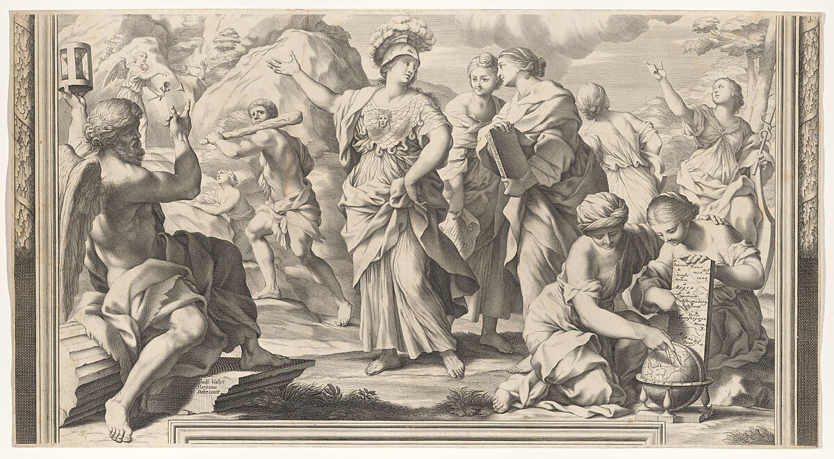 - Title: Allegory with Time, Pallas Athene, and various muses, after frescoes in the Barberini Palace (?)