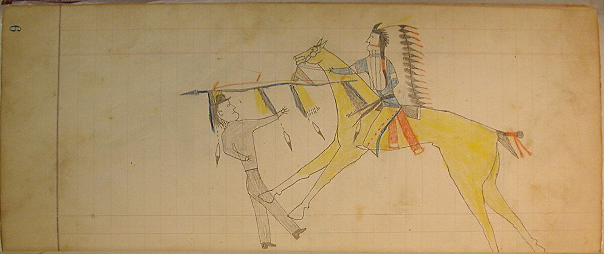 - Title: Maffet Ledger: Indian Counting Coup (yellow horse, two figures)