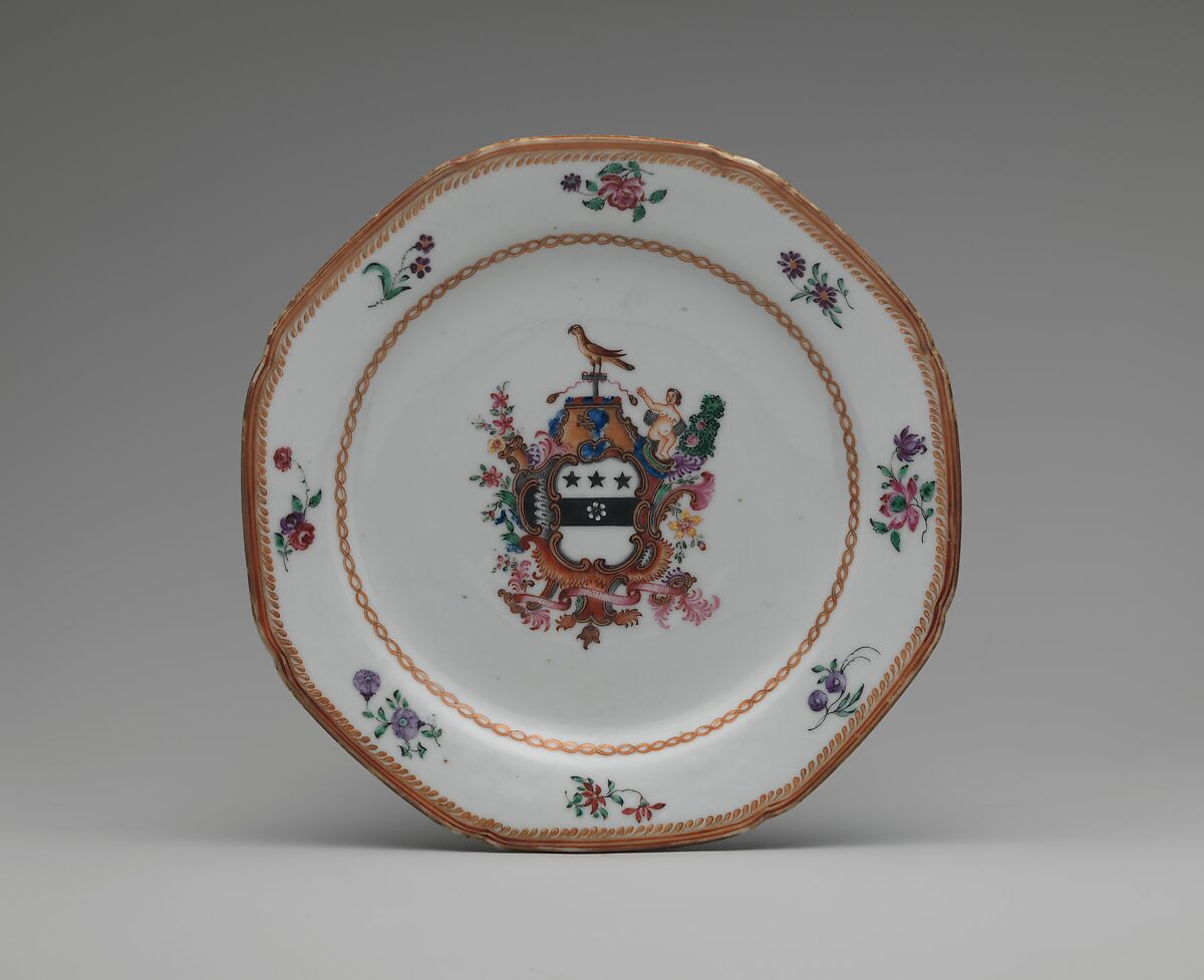 This object belongs to a large dinner service (10.149.1–.248) bearing the Townley family coat-of-arms. The service, probably ordered by Justice Samuel Chase (1741–1811) of Annapolis, Maryland, displays the enamel-painted arms of Margaret Townley, Chase's aunt.