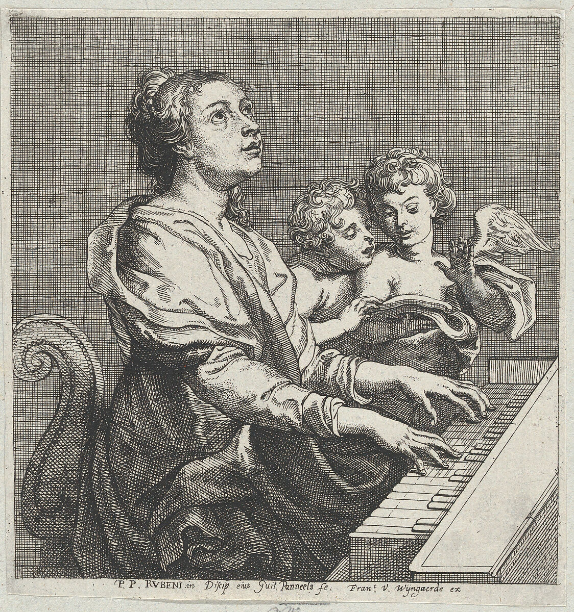 - Title: Saint Cecilia playing the organ with two putti at right