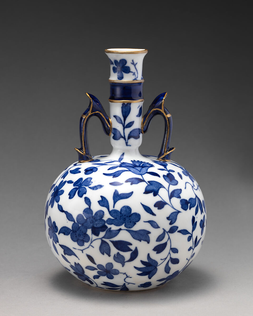 Minton was the most important ceramics factory during the Victorian period and began exhibiting products at the first Great Exhibition of 1851. Founded in 1793 by Thomas Minton at Stoke-on-Trent, the firm initially specialized in transferware pottery before expanding under the ownership of Thomas’s son Herbert Minton, beginning in 1836. Under the ownership of Colin Minton Campbell, who succeeded his uncle in 1858, the factory became recognized as a specialist producer of Aesthetics movement porcelain, which were inspired by a rich array of exotic and eclectic decorative motifs.