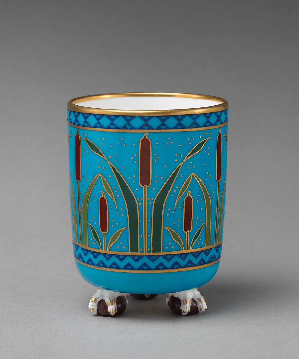 Minton was the most important ceramics factory during the Victorian period and began exhibiting products at the first Great Exhibition of 1851. Founded in 1793 by Thomas Minton at Stoke-on-Trent, the firm initially specialized in transferware pottery before expanding under the ownership of Thomas’s son Herbert Minton, beginning in 1836. Under the ownership of Colin Minton Campbell, who succeeded his uncle in 1858, the factory became recognized as a specialist producer of Aesthetics movement porcelain, which were inspired by a rich array of exotic and eclectic decorative motifs.
