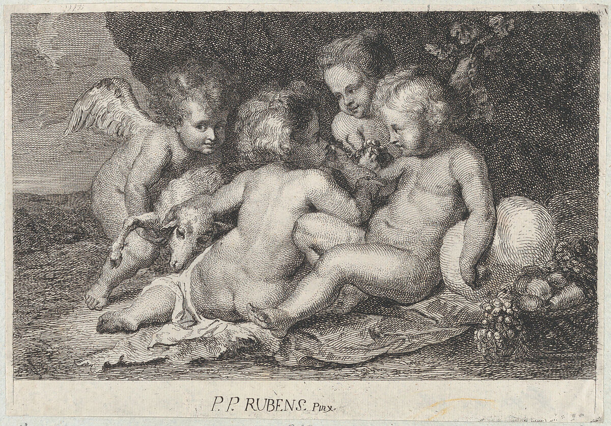 - Title: A group of three children and a putto with fruit and a lamb