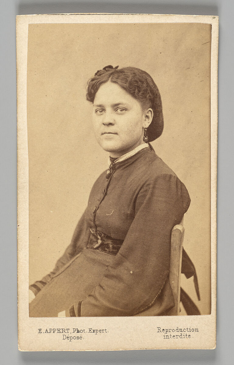 Following France’s defeat in the Franco-Prussian War and the fall of Napoleon III, thousands of Parisians revolted against the new royalist-leaning government and declared Paris an independent commune. Weeks of fighting ensued, during which Versailles troops attacked the city while the Communards threw up barricades, shot hostages, and burned government buildings. Women participated in the insurrection in great numbers, most notoriously as pétroleuses, or female arsonists, who torched several government buildings during the Commune's bloody last week. Soon afterward, Appert, a Parisian portrait photographer, gained exclusive access to a makeshift prison at Versailles and made portraits of individual prisoners, who ceded the rights to their likenesses. He issued many of the portraits as cartes-de-visites, such as these, but also integrated the Communards' faces into a series of propagandistic photomontages entitled "Crimes of the Commune."