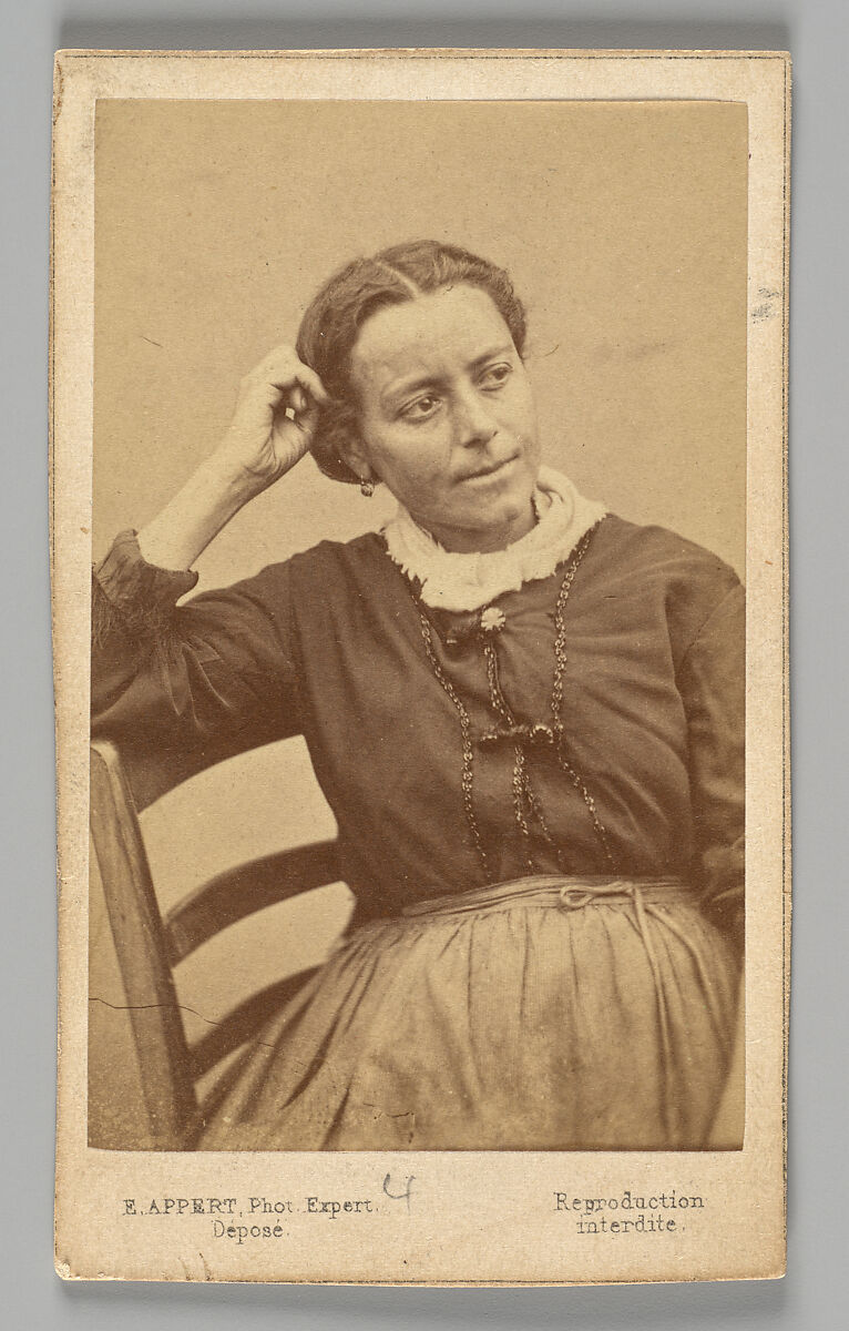 Following France’s defeat in the Franco-Prussian War and the fall of Napoleon III, thousands of Parisians revolted against the new royalist-leaning government and declared Paris an independent commune. Weeks of fighting ensued, during which Versailles troops attacked the city while the Communards threw up barricades, shot hostages, and burned government buildings. Women participated in the insurrection in great numbers, most notoriously as pétroleuses, or female arsonists, who torched several government buildings during the Commune's bloody last week. Soon afterward, Appert, a Parisian portrait photographer, gained exclusive access to a makeshift prison at Versailles and made portraits of individual prisoners, who ceded the rights to their likenesses. He issued many of the portraits as cartes-de-visites, such as these, but also integrated the Communards' faces into a series of propagandistic photomontages entitled "Crimes of the Commune."