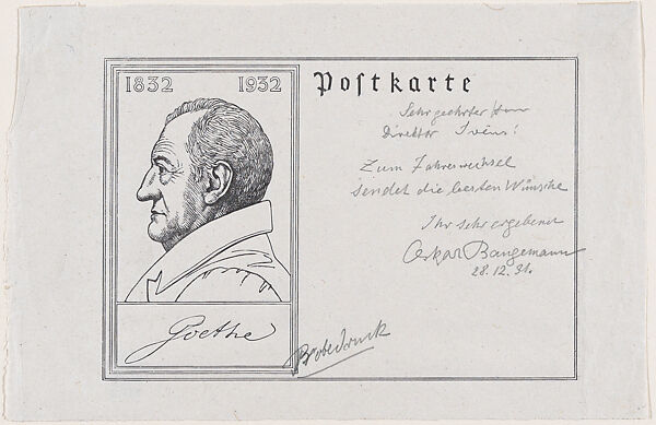 - Title: Postkarte, for Goethe Centenial, with portrait of Goethe