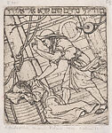 - Title: Story of Jonah: Jonah on the deck of a ship, collapsed over a stack of ropes at left, another man holding onto him and raising a finger