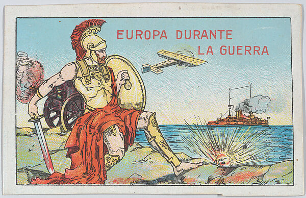 Collectible trade cards such as these were inserted in commercial products to advertise brands and communicate information about the Great War to a wide audience. Included in this set are portraits of heads of state, depictions of important battles, and representations of daily life during the War. Each illustration is accompanied by a related description on the back of the card.