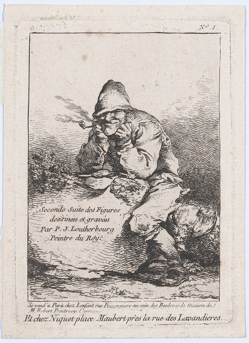 Loutherbourg, an Alsatian painter who studied etching in Johann Georg Wille’s academy, clearly admired the prints of the seventeenth-century Neapolitan painter Salvator Rosa, as did many other French printmakers of the time. In the set to which this print belongs (2018.53.1-6), entitled "Second Suite of Figures,"Loutherbourg took up a format associated with Rosa in order to showcase his own inventiveness and fluency.