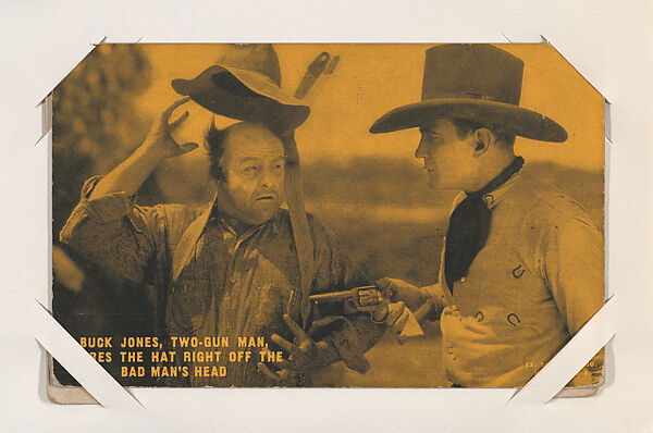 - Title:Buck Jones, Two-Gun Man, scares the hat right off the bad man's head from Western Stars or Scenes Exhibit Cards series (W412)