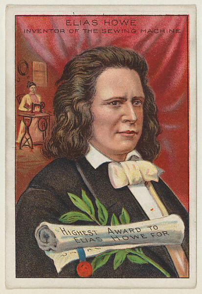 - Title: Elias Howe, Inventor of the Sewing Machine, from the "Heroes of History" series (T68), issued with Miners Extra Smoking Tobacco, Natural Leaf Scrap, and Royal Bengals Little Cigars