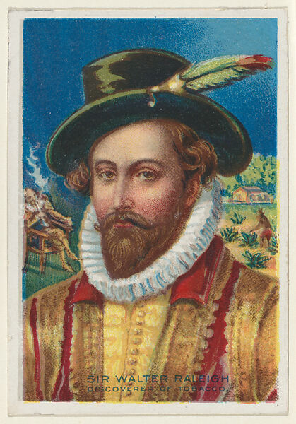 - Title: Sir Walter Raleigh, Discoverer of Tobacco, from the "Heroes of History" series (T68), issued with Miners Extra Smoking Tobacco, Natural Leaf Scrap, and Royal Bengals Little Cigars