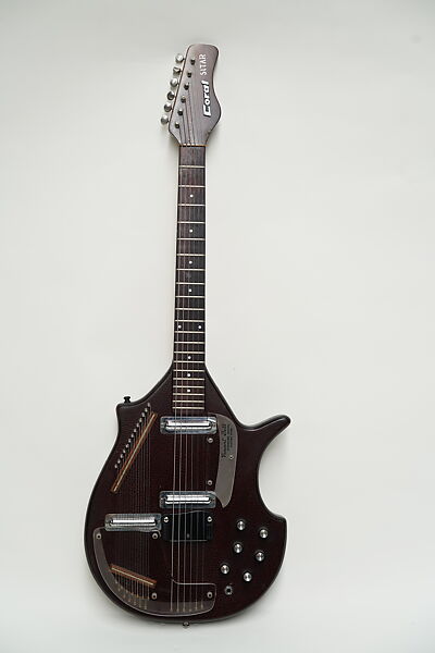 This work of art is currently on loan to the museum.The sitar became a popular sound in the late 1960s, especially after it was used by George Harrison on the Beatles’ "Norwegian Wood" and by Brian Jones on the Rolling Stones’ "Paint It, Black." Working for Danelectro’s Coral line, New York studio musician Vincent Bell developed a guitar with an elongated bridge that creates a buzzy, sitarlike tone without requiring guitarists to learn another instrument.
