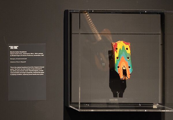 This work of art is currently on loan to the museum.This is the original headstock from Eric Clapton’s famed guitar “the Fool” (on view nearby). It was removed in the 1970s when former owner Todd Rundgren, a multi-instrumentalist and singer-songwriter, restored the guitar to playing condition, replacing some heavily worn parts.