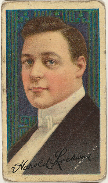 - Title: Harold Lockwood, from the "Movie Stars" series (T82), issued with Recruit Little Cigars, Athletic Little Cigars, and Coupon Cigarettes by Liggett & Myers Tobacco Company