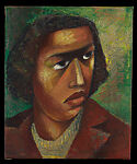A rare early painting by Catlett, Head of a Woman dates to the artist’s time working in Harlem at the George Washington Carver School, where she fundraised and managed publicity while also teaching sculpture and sewing. She derived many subjects from her experiences at the community school, which was attended by domestic servants, cooks, janitors, elevator operators, and garment industry workers. The woman boldly rendered here casts a penetrating gaze to her side, while the strong shape of her head fills the painting’s modest dimensions. In 1946 Catlett relocated to Mexico City, where she participated in a collective of socially conscious artists. There, she turned to wood sculpture and stylized depictions of mothers with children.