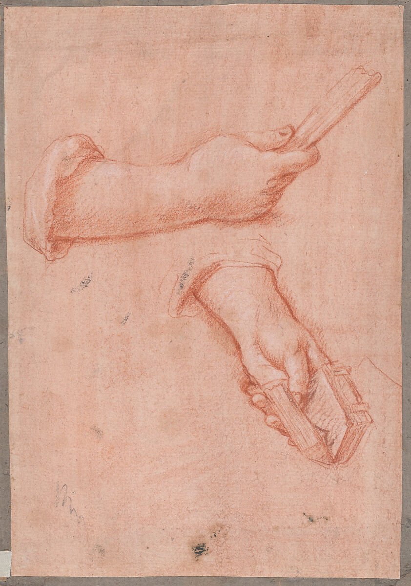- Medium: Red chalk with touches of white chalk on pink tinted paper