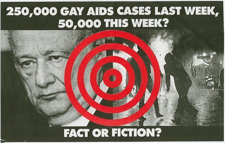 Finkelstein and Moffett were involved in the founding of Gran Fury, the anonymous collective that onetime participant, art historian, and historiographer of graphics of the early years of the AIDS crisis Douglas Crimp called "the unofficial propaganda ministry and guerrilla graphic designers" of the group ACT UP (AIDS Coalition to Unleash Power, established in March 1987 in New York). Frustrated with the unsatisfactory and contradictory response of the New York City government (not to mention the larger, even more conservative forces at work in Washington, D.C.) to the burgeoning AIDS crisis—and faced with a mounting toll of friends and loved ones who were perishing from the brutal disease—the artists worked together here but also collectively with others to design various posters, flyers, and stickers that would bring awareness to a larger public. Here, New York’s mayor Ed Koch is targeted for his equivocating statements about the extent of the crisis—a seemingly straightforward but mind-bogglingly vast number either way.