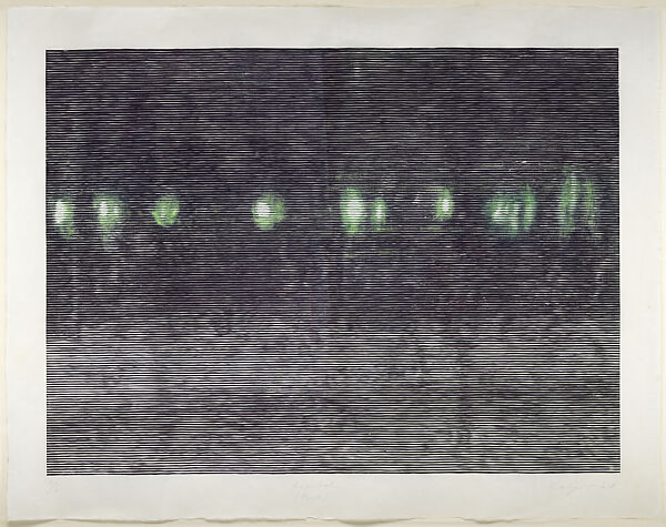 - Medium: Woodcut with dark blue ink