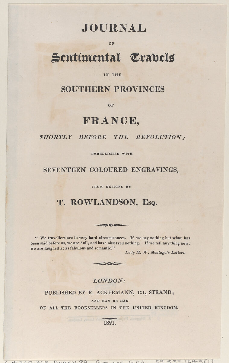 - Series/Portfolio: Journal of Sentimental Travels in the Southern Provinces of France, Shortly Before the Revolution