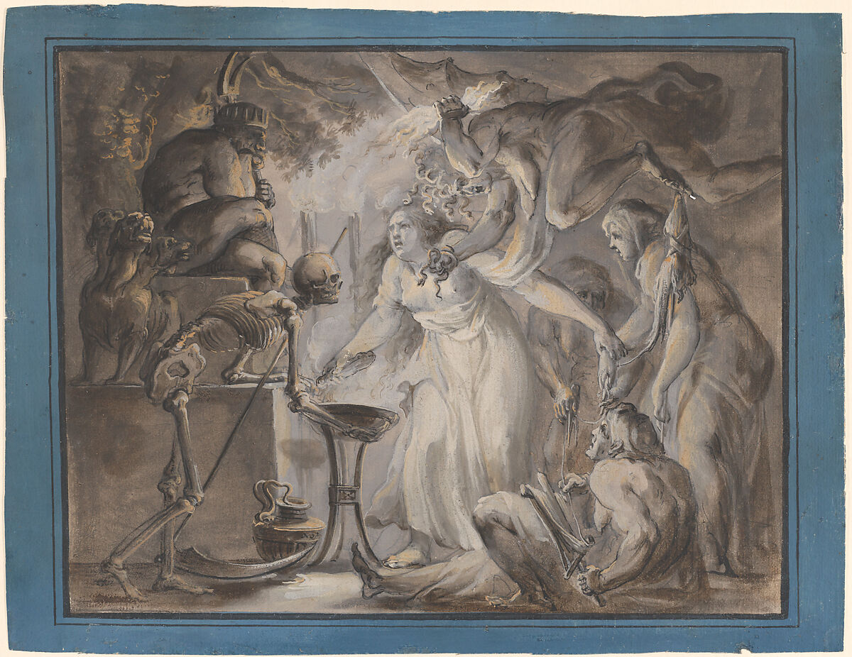 - Medium: Pen and black and gray ink with gray and brown wash, heightened with white and yellow, over black chalk, set within a fictive mount, drawn with a blue wash border and black ink framing lines