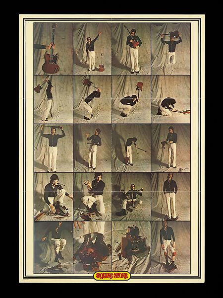 This work of art is currently on loan to the museum.This promotional poster by Annie Liebovitz for Rolling Stone features Pete Townshend demonstrating how he smashes his instruments on stage. The destroyed guitar from the shoot was preserved in Lucite and displayed at the Rolling Stone offices.