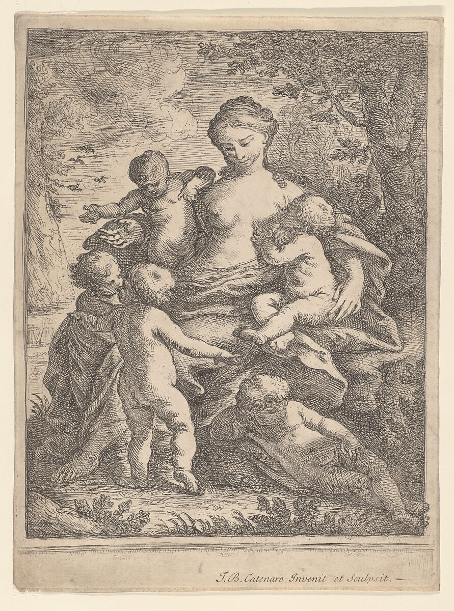 - Title: Charity, seated in a landscape surrounded by five nude children