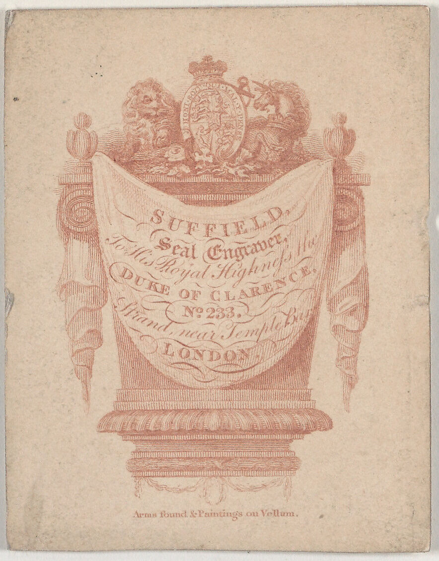 - Title: Trade Card for Suffield, seal engraver